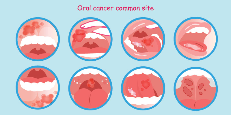 Oral cancer is divided into two categories – those occurring in the oral cavity (your lips, the inside of your lips and cheeks, teeth, gums, the front two-thirds of your tongue and the floor and roof of your mouth) and those occurring in the oropharynx (middle region of the throat, including the tonsils and base of the tongue).